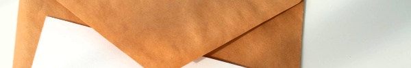 (白い封筒を赤いリボンのシールで留めて。)